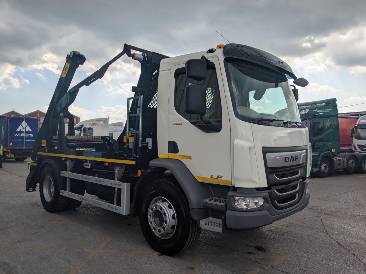 This DAF LF Skip Loader registration LF260FA has a Diesel engine with a Manual gearbox and is finished in the colour White.